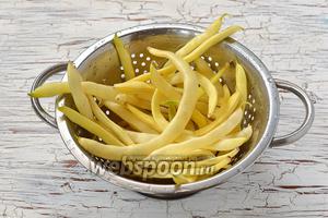 - Отварите в подсоленном кипятке стручки фасоли, слейте отвар.