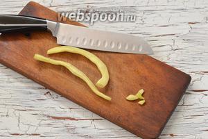 Отрезать у каждого стручка кончики и если она есть твёрдая жилка, — удалить её.